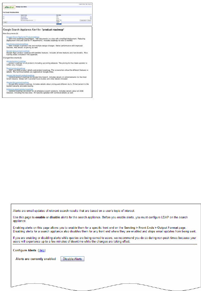 the user creates an alert, the search appliance sends the user an email whenever it finds new or