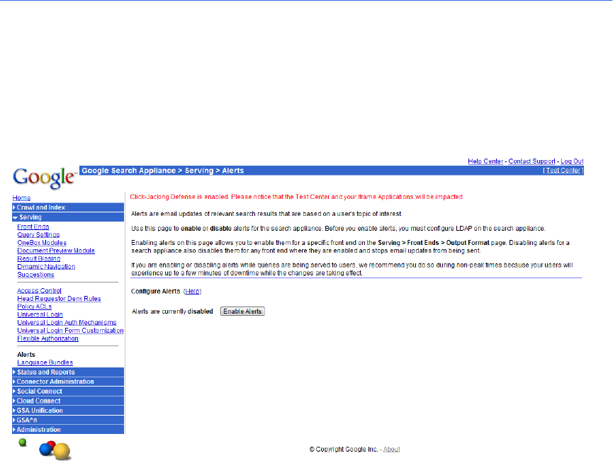 For example, to enable user alerts (see “Enabling User Alerts” on page 51), use the Serving > Alerts