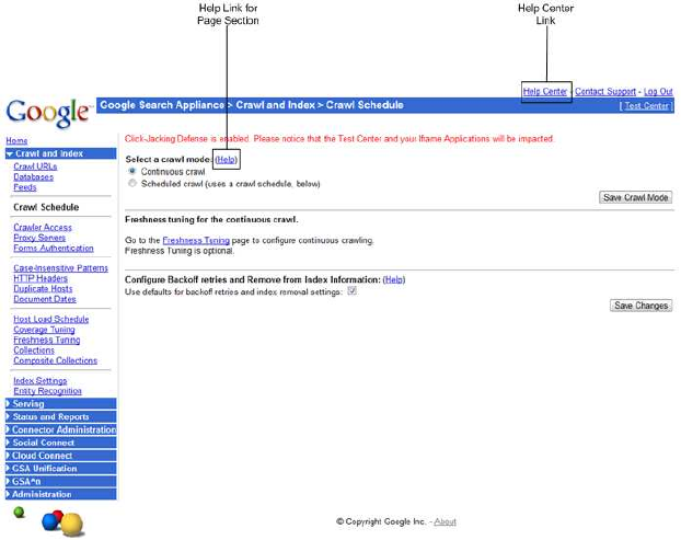 Each page in the Admin Console contains help links, as shown in the following figure.
