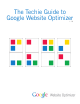 The Techie Guide to Google Website Optimizer Forward Welcome to The Techie Guide for Google Website Optimizer™ (GWO) This guide will help you integrate GWO into any website and test almost anything. You’ll find detailed technical information on what GWO does and how it works. We’ll cover integration issues (“Where exactly do I put the GWO code?”) and setup issues (“How do I create an experiment using a nonstandard setup?”). We’ll show you how to launch simple experiments and full-on hairy scenarios.