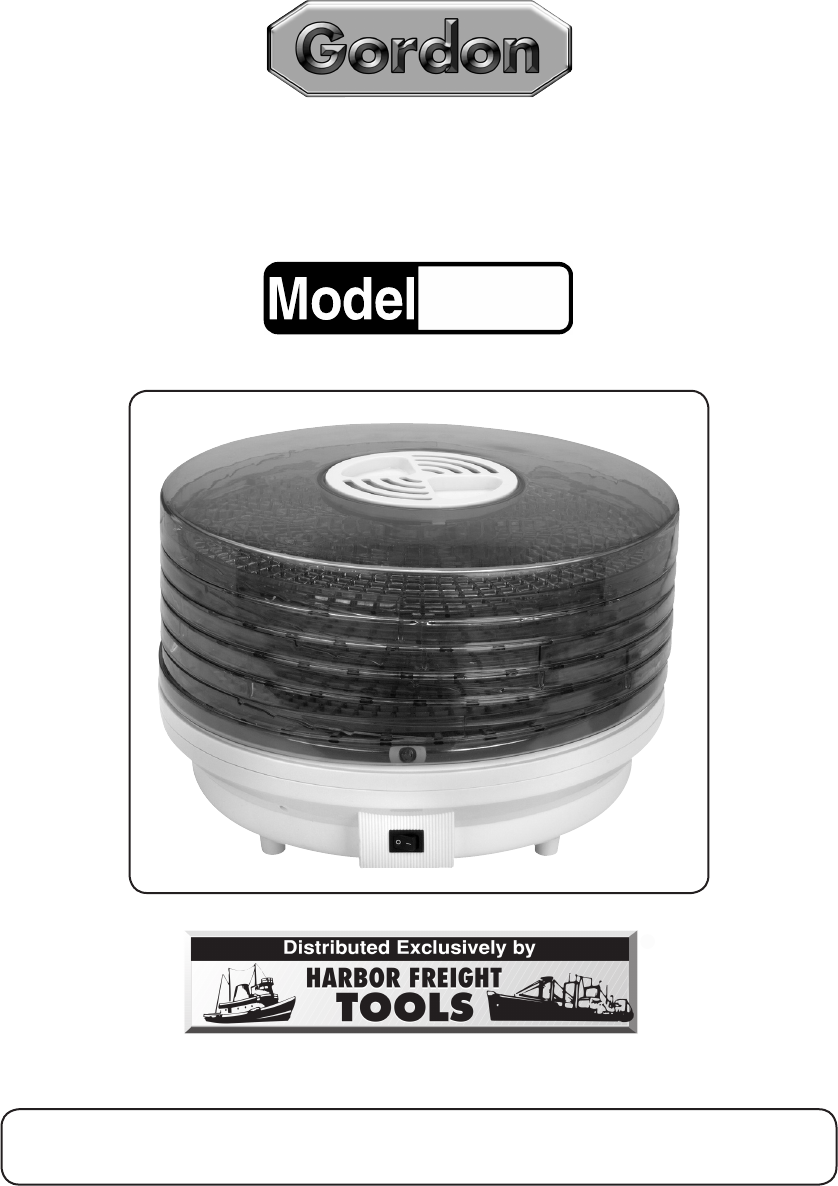 5 TIER FOOD DEHYDRATOR 94878 Assembly And Operation Instructions Due to continuing improvements, actual product may differ slightly from the product described herein. ® 3491 Mission Oaks Blvd., Camarillo, CA 93011 Visit our website at: http://www.harborfreight.com To prevent serious injury, read and understand all warnings and instructions before use. Copyright© 2006 by Harbor Freight Tools®. All rights reserved.