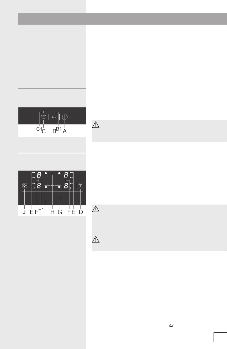 • Touch the “+” sensor key (G) to set the power level 1-9. If the