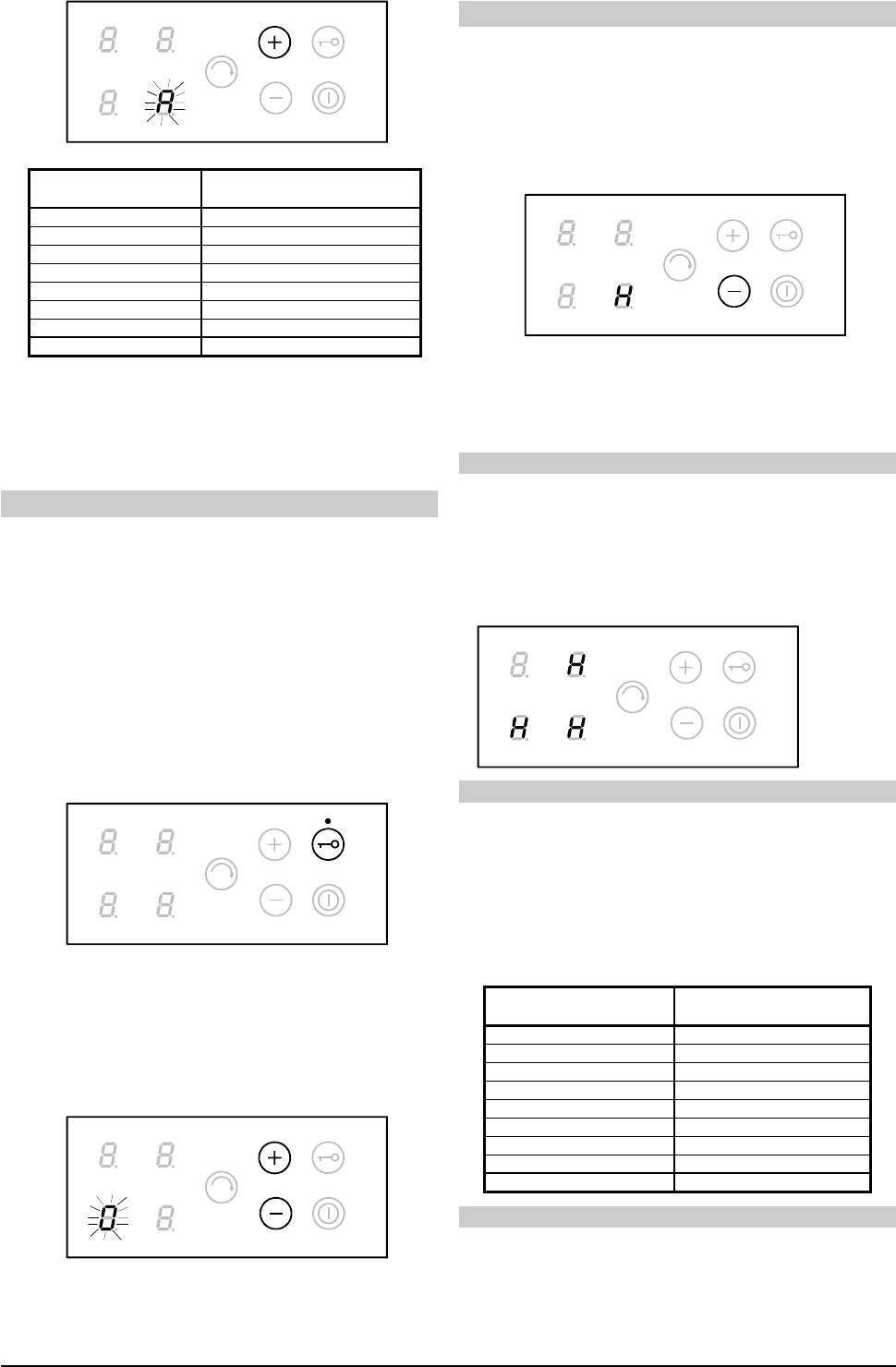 for the main hob switch and the blocking sensor. In the blocked