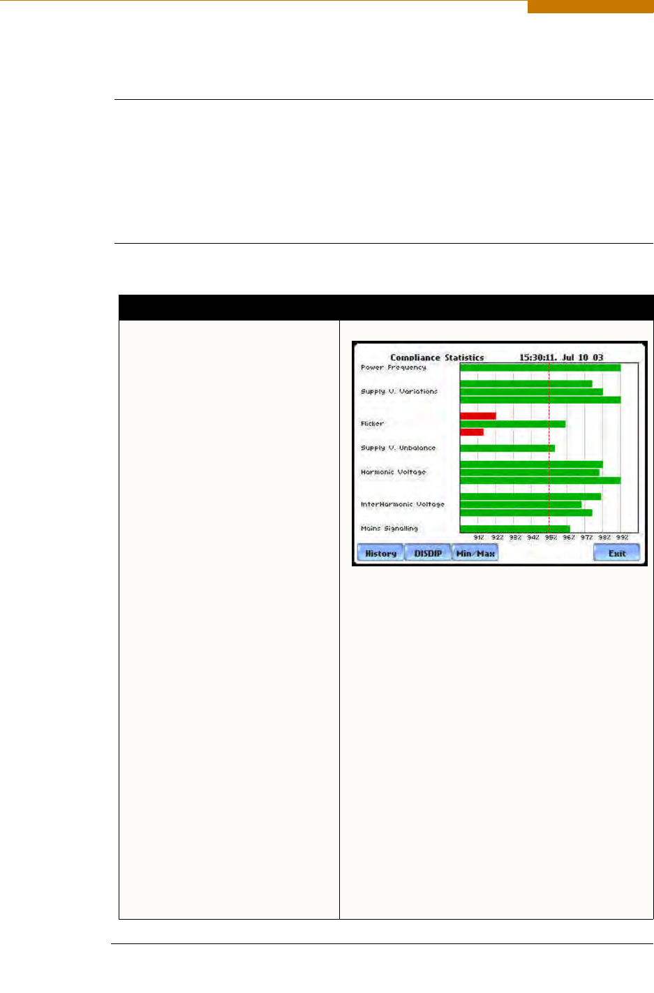 EN50160 parameters. The bar chart indicates the percentage of the interval passing the