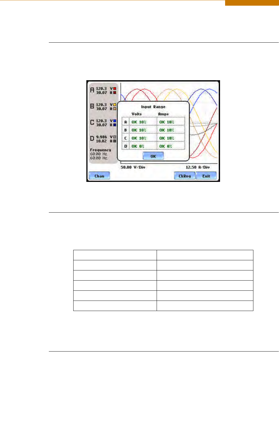 The Input Range screen is displayed by pressing the CkRng key on the Scope mode