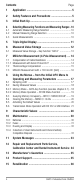 Contents Page 1 Application .............................................................. 5 2 Safety Features and Precautions ............................ 5 3 Initial Start-Up ......................................................... 8 4 Selecting Measuring Functions and Measuring Ranges .10 4.1 4.2 4.3 Automatic Measuring Range Selection ................................ 10 Manual Measuring Range Selection .................................... 10 Quick Measurements ...............................
