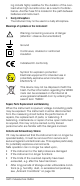 Electrical Safety Safety class Measurement category Contamination degree EX marking II per IEC/EN 61010-1:2010 /VDE 0411-1:2011 50 V CAT I 2 CE 0080 II 2 G Ex ia IIA T4 Gb Ex = prototype tested II = Device group 2 = Device category G = Atmosphere (gas) Ex = conforms to European Ex standards ia = Type of protection (intrinsic safety) IIA = Explosion category T4 = Temperature class Gb = Equipment Protection Level (EPL) Tamb. = –10 C ... +50 C (Tamb.