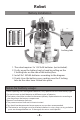 Robot Battery Installation Locking tabs 1. The robot requires 3 x 1.5V AAA batteries (not included). 2. Firstly, open the battery box by hand by pulling on the 2 locking tabs on the side of the battery box. 3. Install 3x 1.5VAAA batteries according to the diagram. 4. Firmly close the battery cover, making sure the 2 locking tabs on the sides have clicked into place. Notes for battery usage: 1. When replacing non-rechargeable batteries, only replace with the same battery type. 5.