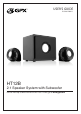 USER’S GUIDE V:1348-1208-11 HT12B 2.1 Speaker System with Subwoofer For the most up-to-date version of this User’s Guide, go to www.gpx.