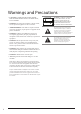 Warnings and Precautions • CAUTION: TO PREVENT ELECTRIC SHOCK, MATCH WIDE BLADE OF PLUG TO WIDE SLOT, FULLY INSERT. • WARNING: To reduce the risk of fire or electric shock, do not expose this apparatus to rain or moisture. • AVERTISSEMENT: Pour réduire le risque d’incendie ou de choc électrique, ne pas exposer cet appareil sous la pluie et l’humidité.