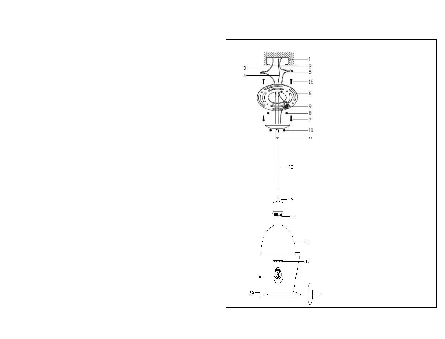 5. Attach the fixture canopy against the Outlet box(1),secure with the Ball nut(10)