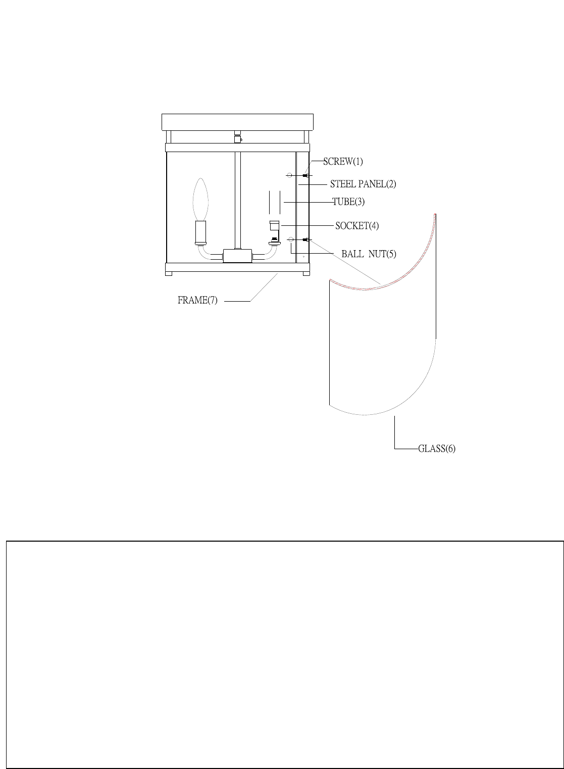2.Install the glass panel(6)onto frame(7) ,then install the steel panel(2)onto screw(1), and secure them with ball