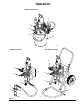 Operation Starting and Adjusting the Pump WARNING To reduce the risk of serious injury whenever you are instructed to relieve pressure, always follow the Pressure Relief Procedure on page 7. See Fig. 5. Be sure the air regulators (F, G) and bleedtype master air valve (B) are closed. Do not install the spray tip yet. On cart mount units, place the suction tube (7) in the fluid container. On wall mount units, screw the bung adapter (18) into the container’s bung hole.