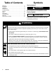 Table of Contents Warnings . . . . . . . . . . . . . . . . . . . . . . . . . . . . . . . . . . . . . . 2 Installation . . . . . . . . . . . . . . . . . . . . . . . . . . . . . . . . . . . . 4 Operation . . . . . . . . . . . . . . . . . . . . . . . . . . . . . . . . . . . . . 6 Maintenance . . . . . . . . . . . . . . . . . . . . . . . . . . . . . . . . . . . 7 Troubleshooting . . . . . . . . . . . . . . . . . . . . . . . . . . . . . . . . 8 Service . . . . . . . . . . . . . . . . . . . . . . . . . . . . . .