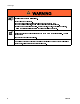 Warnings WARNING EQUIPMENT MISUSE HAZARD Misuse can cause death or serious injury. • Do not operate the unit when fatigued or under the influence of drugs or alcohol. • Do not exceed the maximum working pressure or temperature rating of the lowest rated system component. See in all equipment manuals. • Use fluids and solvents that are compatible with equipment wetted parts. See Technical Data in all equipment manuals. Read fluid and solvent manufacturer’s warnings.