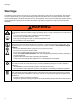 Warnings WARNING WARNING FIRE AND EXPLOSION HAZARD Flammable fumes, such as solvent and paint fumes, in work area can ignite or explode. To help prevent fire and explosion: • Use equipment only in well ventilated area. • Eliminate all ignition sources; such as pilot lights, cigarettes, portable electric lamps, and plastic drop cloths (potential static arc). • Keep work area free of debris, including solvent, rags and gasoline.