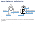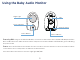 Using the Baby Audio Monitor Night Light Clip Power Indicator A Power Button B Channel Switch Micro USB Port Powering ON: Using the included USB cable, connect the USB end into the included wall adapter and the Micro USB end into the audio monitor’s Micro USB port. The Power Indicator will illuminate green indicating the power is ON. Power: Press and hold the Power button for two seconds to turn the monitor on. Move the Channel switch on the back to the A or B position to match the Parent Monitor.