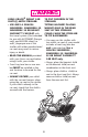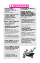 3WIVEL 7HEELS s ,ES ROUES PIVOTANTES s ,AS RUEDAS GIRATORIAS 33 Front swivel wheels lock for use on uneven surfaces such as grass, stones or gravel. Les roues pivotantes avant se barrent pour un usage sur les surfaces irrégulières tel que le gazon, les cailloux ou le gravier. 34 Las ruedas giratorias delanteras se traban para el uso en superficies desparejas tales como césped, piedras o grava.