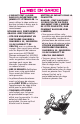 &AILURE TO FOLLOW THESE WARNINGS AND THE ASSEMBLY INSTRUCTIONS COULD RESULT IN SERIOUS INJURY OR DEATH s 0,%!3% 3!6% /7.%2 3 -!.5!, &/2 &5452% 53% s .%6%2 !,,/7 9/52 342/,,%2 to be used as a toy. s !$5,4 !33%-",9 2%15)2%$ s 342/,,%2 4/ "% 53%$ only at walking speed. Product not intended for use while jogging, skating, etc. s .%6%2 ,%!6% #(),$ unattended. Always keep child in view while in stroller. s $)3#/.4).5% 53).' 9/52 342/,,%2 should it become damaged or broken. s !6/)$ 3%2)/53 ).