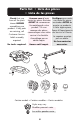 Parts list • Liste des pièces • Lista de las piezas Assurez-vous d'avoir Verifique que cuenta Check that you toutes les pièces illustrées con todas las piezas have all the parts AVANT de commencer mostradas ANTES de shown BEFORE l'assemblage de votre montar su producto. assembling your produit. S'il vous Si falta alguna pieza, product. If any parts manque des pièces, llame al Departamento are missing, call communiquez avec notre de Servicio al Cliente. Customer Service. service à la clientèle.