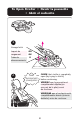 To Recline Seat • Pour incliner le siège • Para reclinar el asiento CAUTION When making adjustments to the stroller seat, make sure child’s head, arms, and legs are clear of moving seat parts and stroller frame. 23 AVERTISSEMENT: Lorsque vous faites des ajustements au siège de la poussette, s'assurer que la tête de l'enfant, les bras, et les jambes soient dégagés des pièces du siège en mouvement et de l'armature de la poussette.