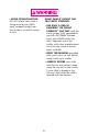 Atención y mantenimiento • La ALMOHADILLA REMOVIBLE PARA EL ASIENTO (si así está equipada) se puede lavar con agua fría en el ciclo delicado y secar al aire. NO USAR BLANQUEADOR. • PARA LIMPIAR EL ARMAZÓN DEL COCHECITO, use solamente jabón de uso doméstico y agua tibia. NO USE BLANQUEADOR ni detergente. • DE VEZ EN CUANDO, INSPECCIONE SU COCHECITO para determinar si hay tornillos flojos, piezas gastadas, material o puntos rotos. Cambie o repare las piezas según sea necesario.
