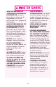 Soins et entretien • LE COUSSIN DE SIÈGE AMOVIBLE (le cas échéant) est lavable à la machine à l’eau froide et au cycle délicat. Suspendre pour sécher. NE PAS UTILISER DE JAVELLISANT. • POUR NETTOYER LE CADRE DE LA POUSSETTE, utilisez un savon ménager et de l'eau tiède. NE PAS UTILISER DE JAVELLISANT ni de détergent. • INSPECTEZ CETTE POUSSETTE DE TEMPS EN TEMPS, afin de repérer toute vis relâchée, pièce usée, matériel déchiré ou joint décousu. Remplacez ou réparez ces pièces si nécessaire.