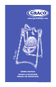 Care and Maintenance • FROM TIME TO TIME CHECK YOUR SWING for loose screws, worn parts, torn material or stitching. Replace or repair the parts as needed. Use only Graco replacement parts. • REMOVABLE CLOTH SEAT COVER may be machine washed in cold water on delicate cycle and drip-dried. NO BLEACH. • TO CLEAN FRAME, use only household soap and warm water. NO BLEACH OR DETERGENT. • EXCESSIVE EXPOSURE TO SUN OR HEAT could cause fading or warping of parts.