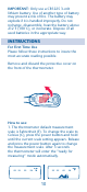IMPORTANT: Only use a CR1225 3-volt lithium battery. Use of another type of battery may present a risk of fire. The battery may explode if it is handled improperly. Do not recharge, disassemble, heat the battery above 212˚F (100˚C), or incinerate. Dispose of all used batteries in the appropriate way. INSTRUCTIONS For First Time Use Please follow these instructions to insure the most accurate reading possible. Remove and discard the protective cover on the front of the thermometer. How to use: 1.