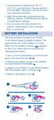 • If temperature is higher than 99.5˚C (37.5˚C ), you will hear 10 beeps and the LCD will flash, letting the user know that a fever has been detected. • Wait 30 minutes after physical exercise, bathing, eating, or drinking before taking a temperature reading. • Do not expose the thermometer to extreme temperatures, direct sunlight, dust, or electricity. BATTERY INSTALLATION The thermometer includes one CR1225 3-volt lithium battery already installed. The approximate life of this battery is 3 years.