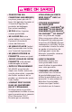To Secure Child • Pour attacher l'enfant • Cómo asegurar al niño 5 Point Harness • Harnais à 5 point • Arnés de 5 puntos FG FH FI Use slide adjuster at shoulder and waist for tighter adjustment. To change shoulder harness slots, see page 22. Utilisez le régulateur coulissant à l’épaule et à la taille pour un ajustement plus précis. Pour changer des fentes de harnais d’épaule voir la page 22. Use el ajuste deslizable en el hombro y la cintura para hacer ajustes más apretado.