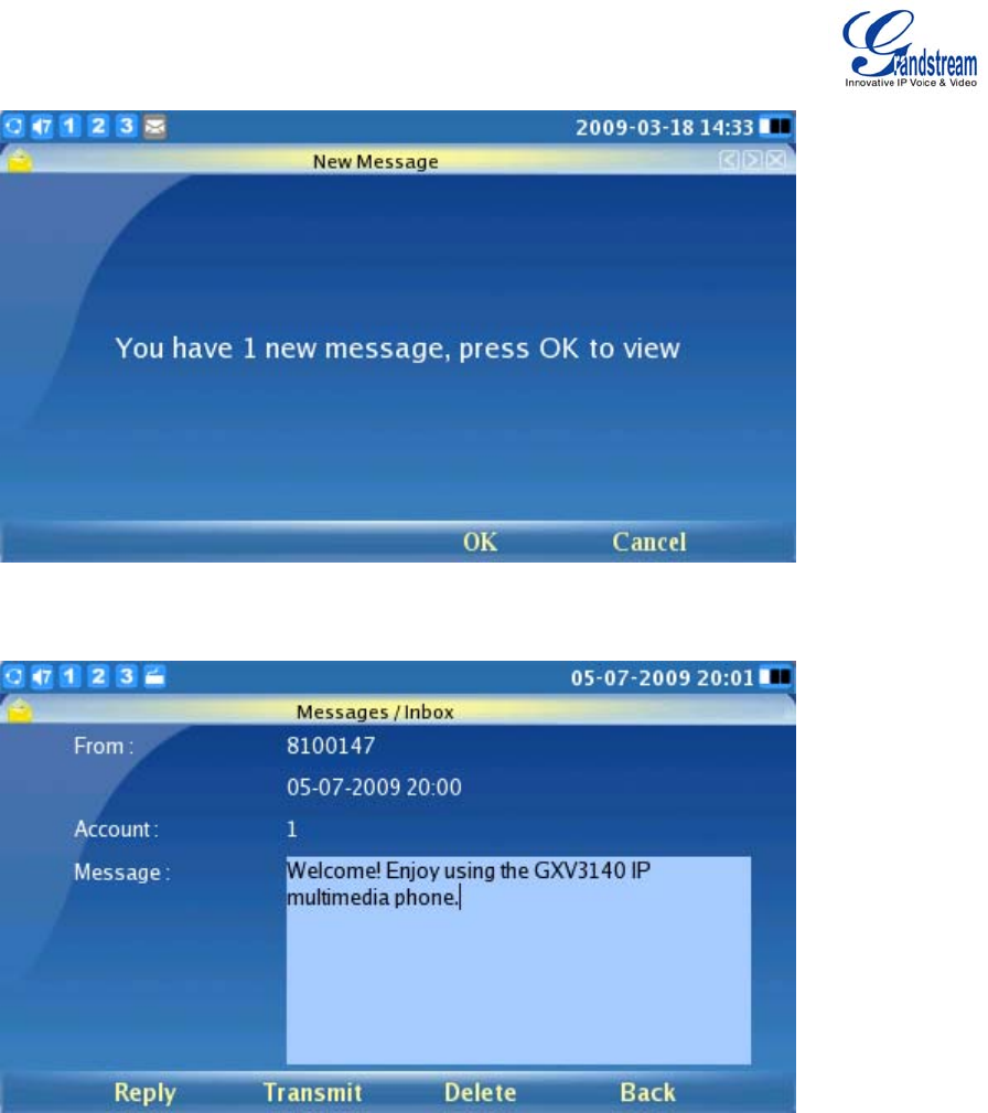 As shown in the figure above, the users can choose to “Reply”, “Forward” or “Delete” the message.