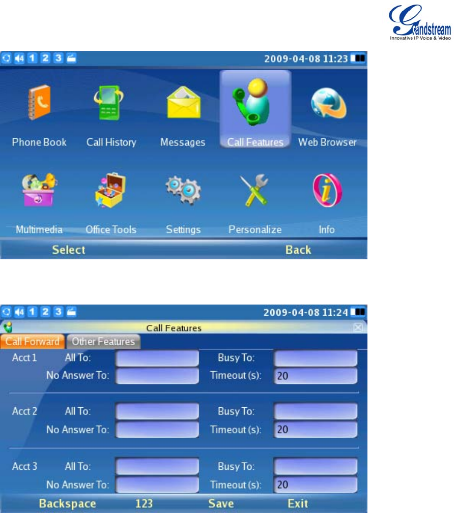 Other features include configuration for Auto Answer, Do Not Disturb, Call Waiting, Call Waiting Tone, and