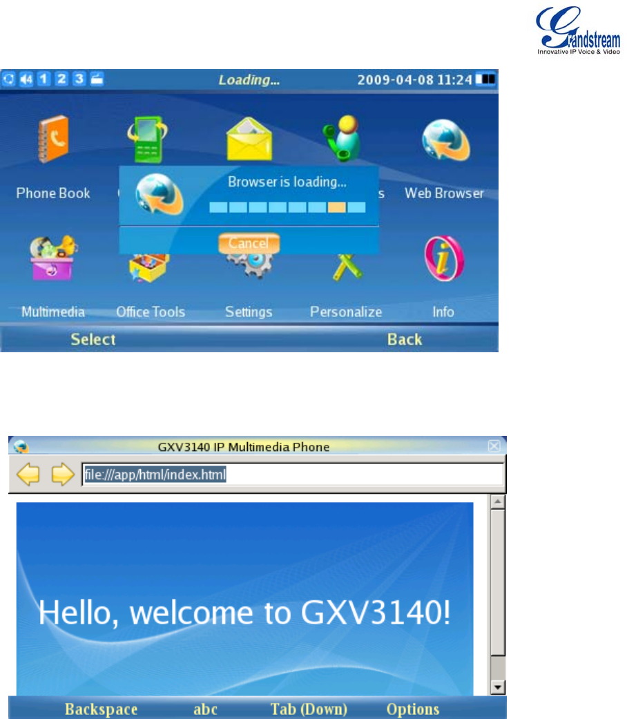 When the web browser has finished loading, a default page displaying “Hello, welcome to GXV3140”
