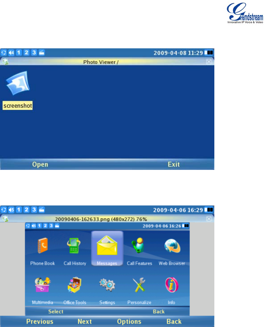 Press the OK button or F1 to Select the Photo Viewer. After the application loads, the user may select