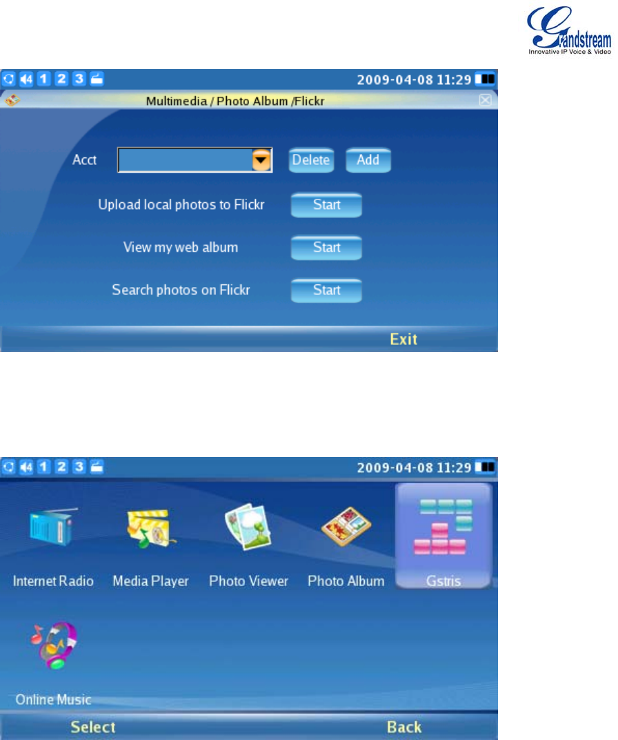 The GXV3140 provides interactive games for your entertainment. Under Menu->Multimedia,