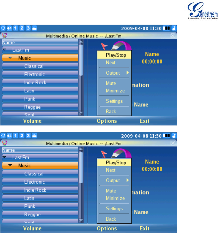 are several settings: the Play/Stop option will control the music, the Next option will skip the current