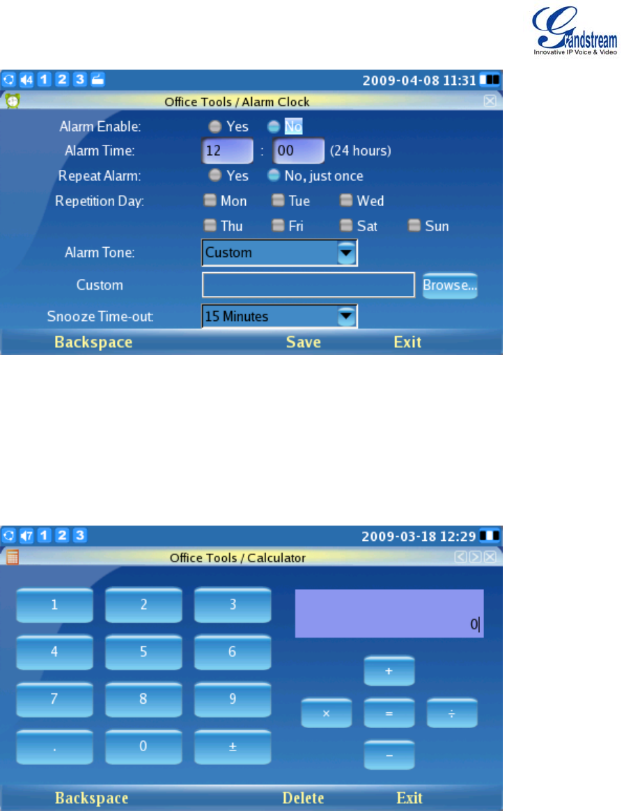 The GXV3140 also includes a Calculator application. To operate the calculator, press the
