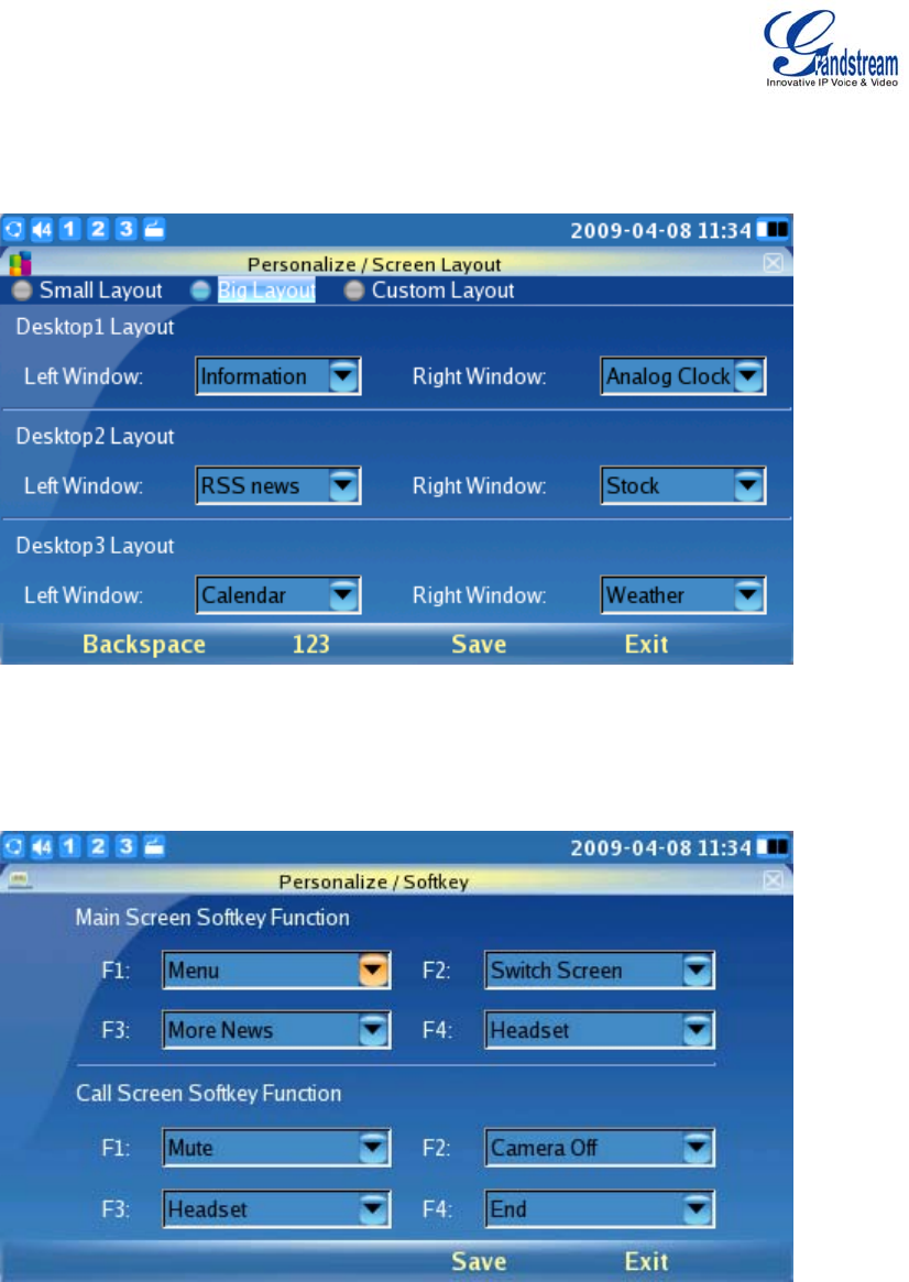 Users can define the soft/function key functions of the Main Screen and Call Screen. There