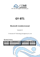 IoT service experts around you GY-BT1 Bluetooth module manual Version1.0 © Granwin IOT Technology (Guangzhou) Co.,Ltd Revision history V1.0 Create version DarrenZhuang 2021.05 V1.1 Update circuit JamesChen 2021.06 V1.