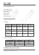 3.1 Size 16X10X2.8mm(length*width*height) 3.2 Renderings 3.3 Pin definition Foot position Pin Name Description 1 PA8 SPI1_DOA 2 PA7 SPI1_CLKA 3 PA6 SPI1_DIA 4 USB0_DM UART1_RXD 5 USB0_DP UART1_TXD 6 PA5 PA5 7 PA4 PWM1 8 PA3 ADC1 9 PA2 CAP3 10 PA1 PWM0 11 PA0 PA0 12 PB9 PB9 13 PB8 PB8 14 PB7 PB7 15 PB6 PB6 4/6 © Granwin IOT Technology (Guangzhou) Co.
