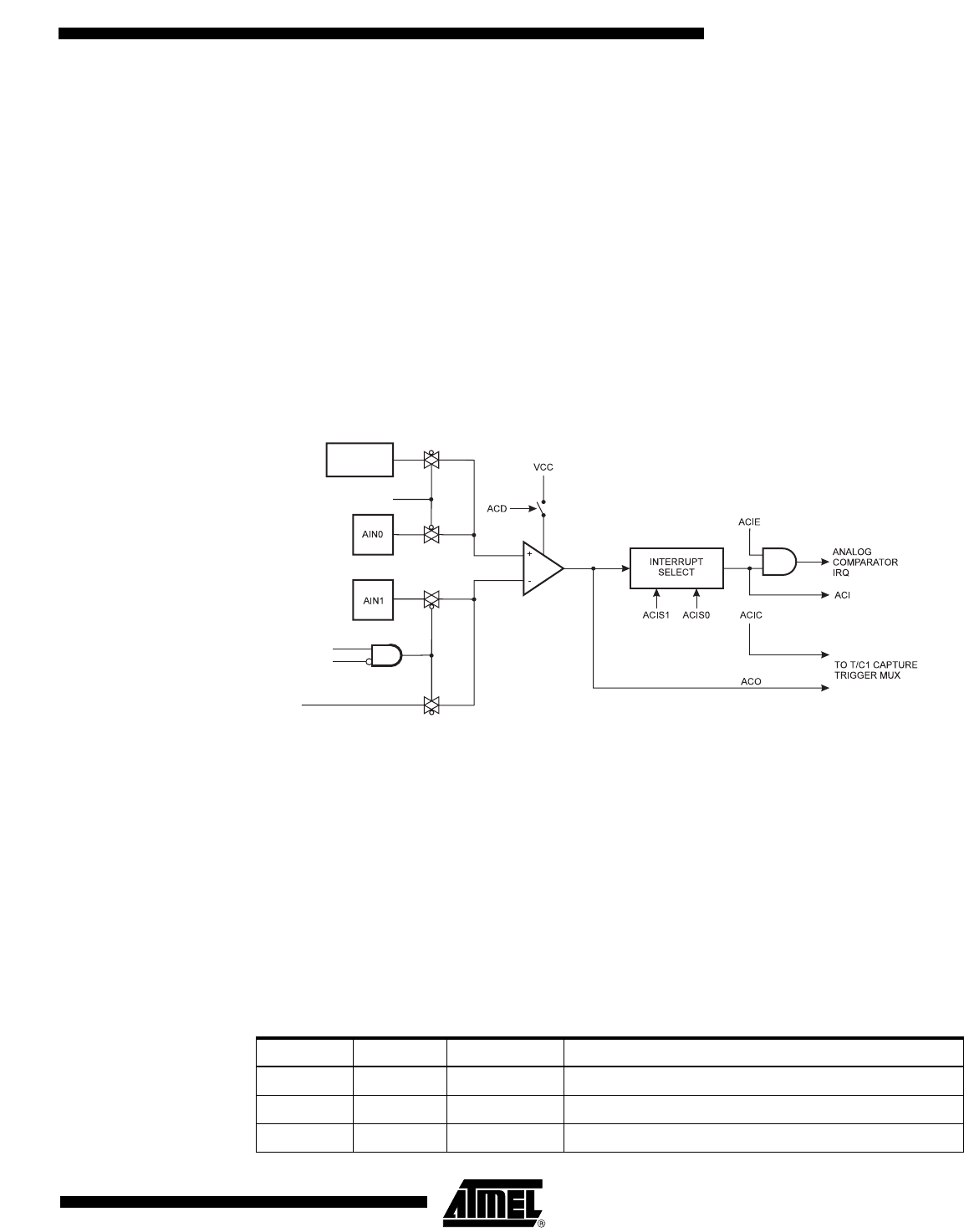 AIN1, the Analog Comparator output, ACO, is set. The comparator’s output can be set to trigger