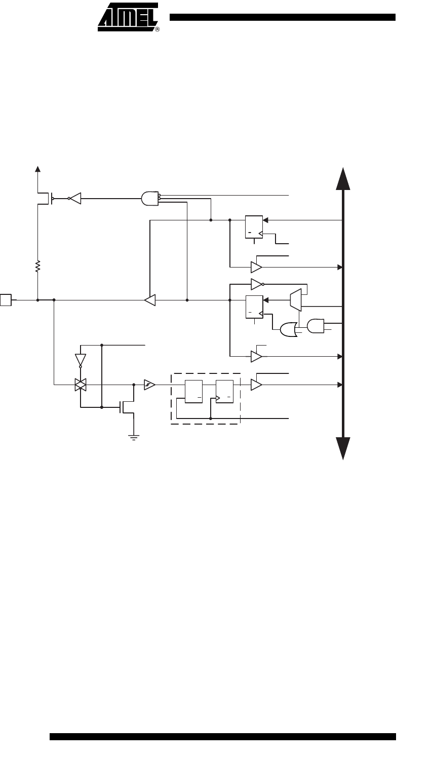 The ports are bi-directional I/O ports with optional internal pull-ups. Figure 12-2 shows a func-
