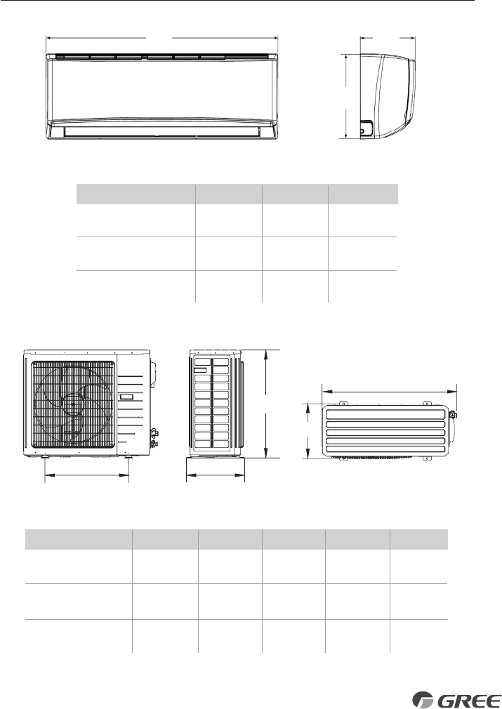 OUTDOOR UNIT DIMENSIONS in (mm)