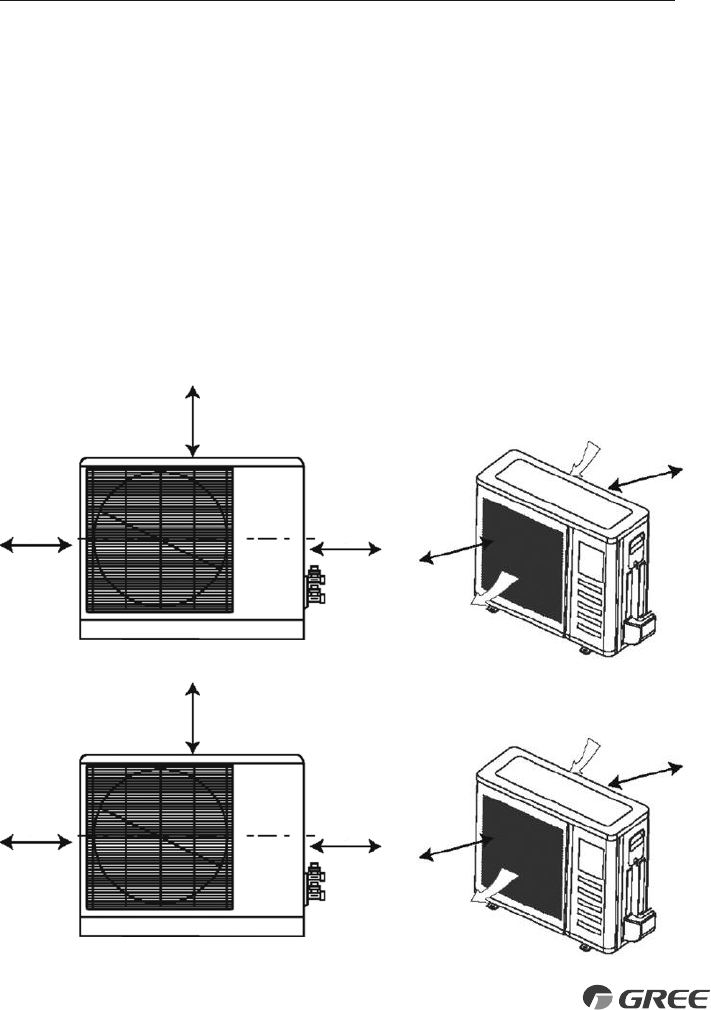 3. Install the outdoor unit where the condensate water can be drained unobstructed during the