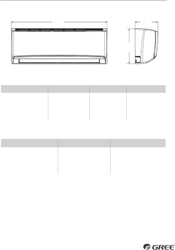 INDOOR UNIT DIMENSIONS – in(mm)