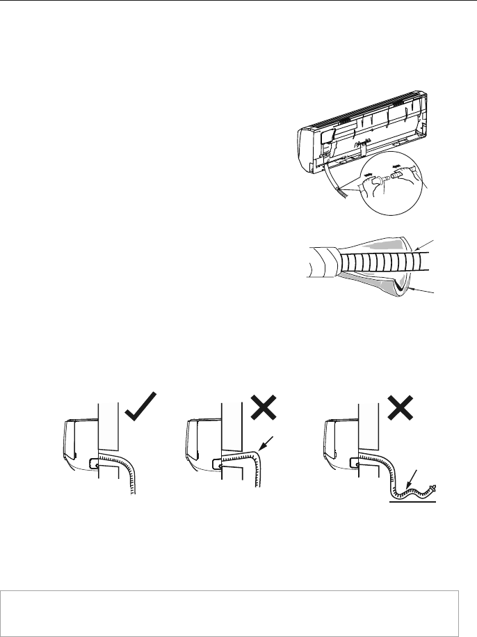 4. Install field supplied drain hose with a downward slope from the Indoor wall unit