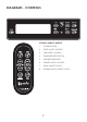 DIAGRAMS - CONTROLS 4 3 1 7 6 5 8 Control Panel & Remote CONTROL PANEL & REMOTE 1. POWER BUTTON MODEButton CONTROL 1. SLEEP Power 2. 1 3. 2 FAN SPEED CONTROL RESET BUTTON 2. REMINDER Sleep Mode Control 4. 5. 6 3 INFRARED RECEIVER 3. PURIFIER Fan Speed Control LEVEL CONTROL 6. 7. AWAY MODE TOGGLE 4. NORMAL/HIGH ReminderMODE Reset TOGGLE 8. 8 7 5. Infrared Receiver 6. Purifier Level Control 7. Away Mode Toggle 8.