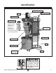 Identification Remote Relay Switch Filter Brush Handle Motor Blower Housing Inlet Restrictor Note: The inlet restrictor is only installed if dust collector is to be used on a 20 Amp-110 Volt circuit and circuit breaker tripping occurs during start-up. Inlet Canister Filter Collection Bag Cyclone Funnel Stand Collection Drum Drum Ground Wire Caster Figure 1. Identification.