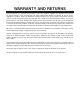 WARRANTY AND RETURNS
